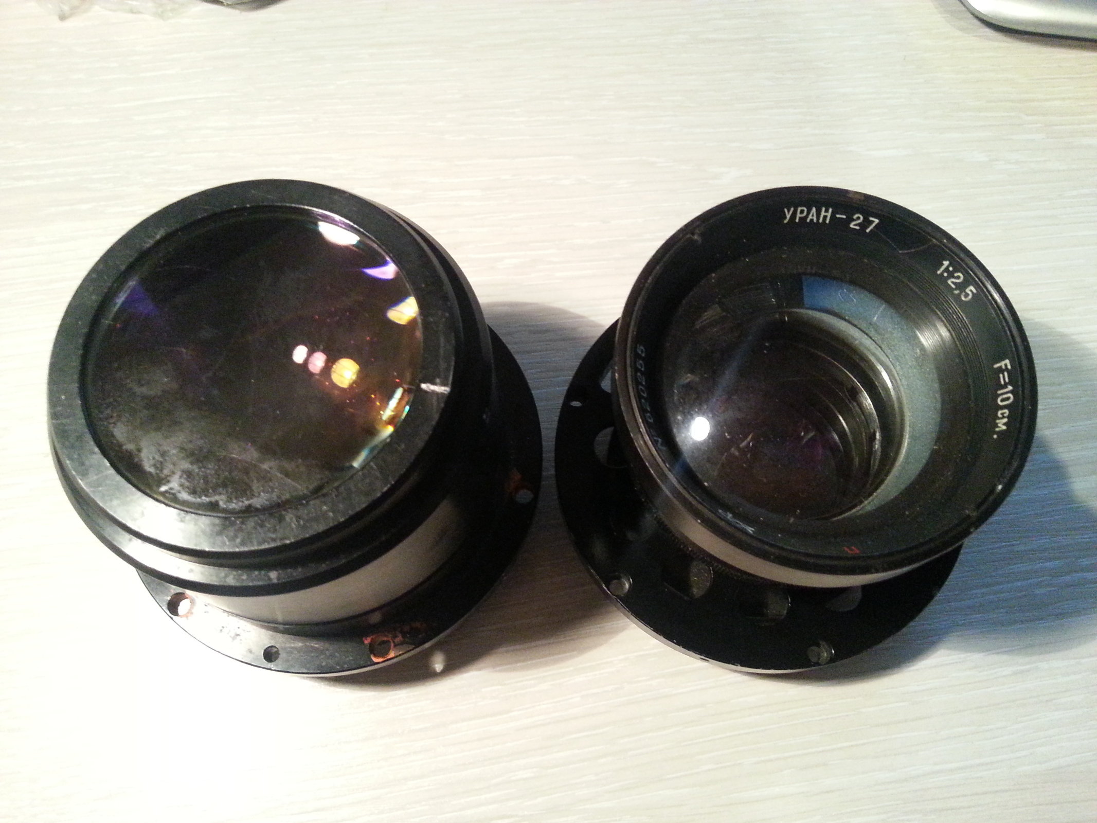 Привет любителям и профессионалам фототехники. Нашел у себя в закромах объектив Уран-27. Прошу Вашей помощи в установлении работоспособности объектива. как понять что он рабочий? Обе ли эти части на фотографиях подлежат совместному использованию? (я не обнаружил как их надежно соединить, крепежные отверстия у них на фланце расположены одинаково). Представляет ли такой объектив какую то ценность и как можно его использовать? Возможно ли где то в Петербурге провести его диагностику, на предмет работоспособности ?