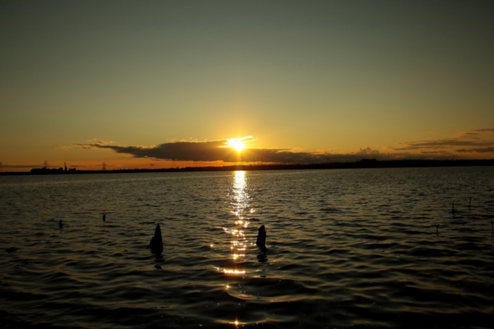 четвертая: просто закат... горизонт править, завал влево.