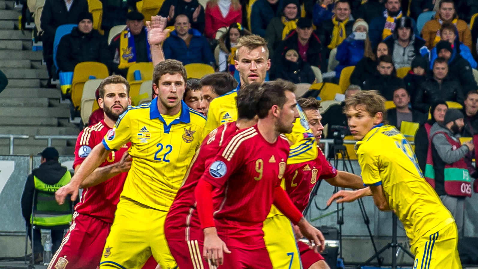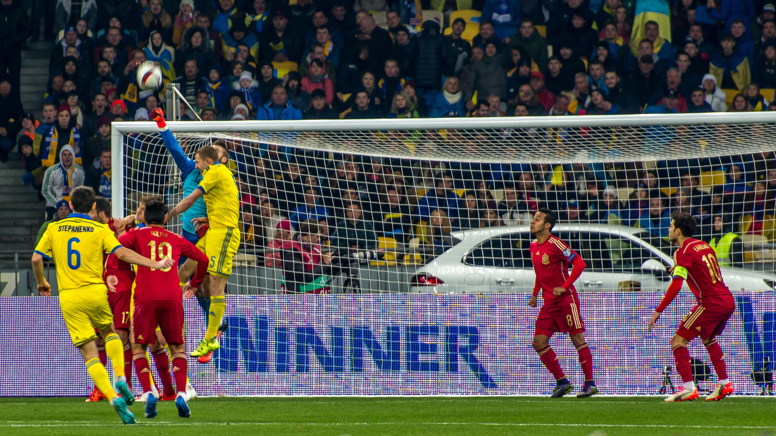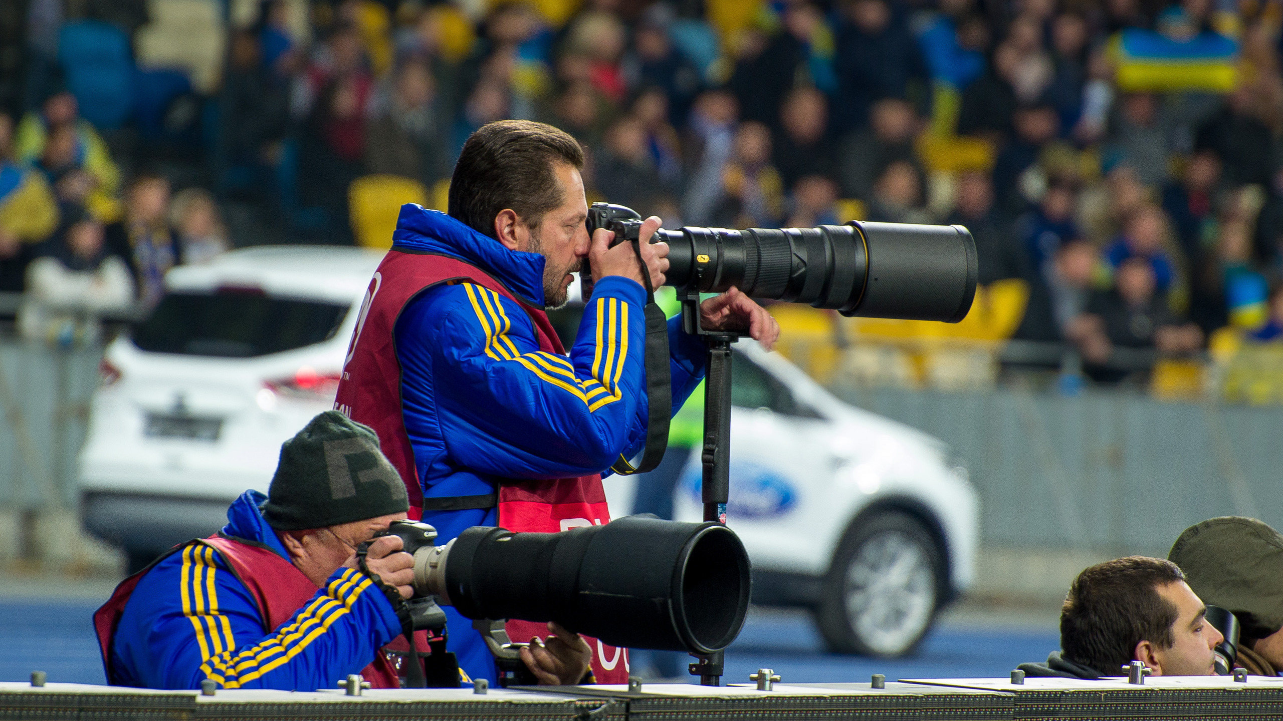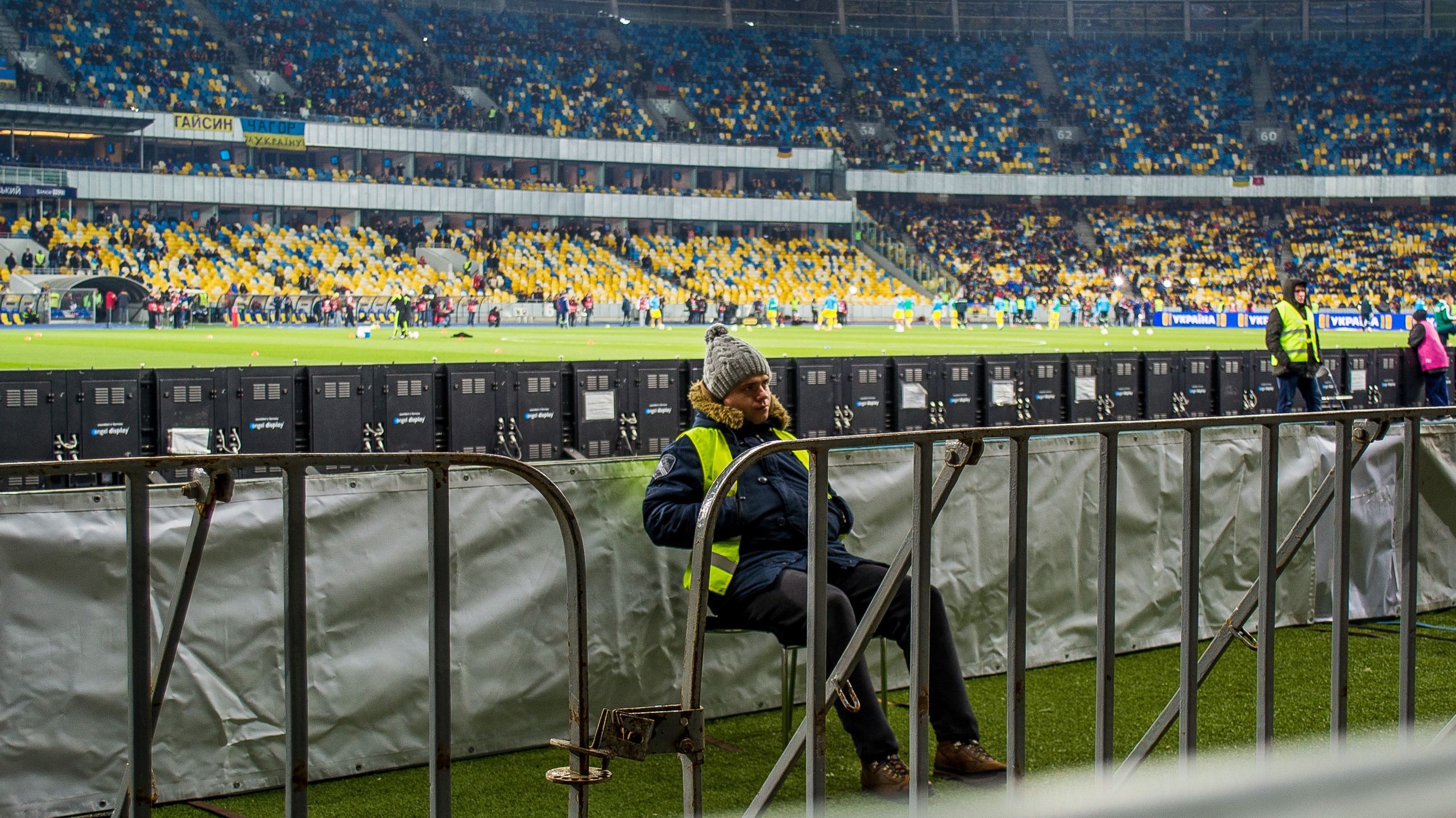 Расскажу как это было у нас. На матч мы с женой зашли как простые зрители. Перед эти у охранника на выставке поясов Кличко, который проходил там же на стадионе, спросили, что имеется ввиду под "професійною фототехнікою", с ней по правилам нельзя заходить на стадион. Он не задумываясь выпалил - 10 см. Если объектив длиннее 10 см, то уже професийна техника (!?). Разработав стратегический план операции, на матч заходили так. У меня был Никон Д3100 с объективом 18-55, у жены в маленьком дамском рюкзачке 70-300. На входе мужиков, извиняюсь, щупают мужики, девочек бабуси. Меня, проведя, соответствующие процедуры, пропустили. Жену пропустили дальше, до бабуси. Дальше примерно такой диалог (после прощупывания) "У Вас там пляшка?" - "Ні" - "А що?" - "Подивіться" - "Нам не можна, вийміть покажіть". Жена показала объектив. Бабуся (немного разочатованно) сказала, что можно проходить. (Наверное за выявленную пляшку она бы получила грамоту). Вот так мы прошли. Дальше выдохнув, собрали уже устройство из врозь занесенных запчастей )